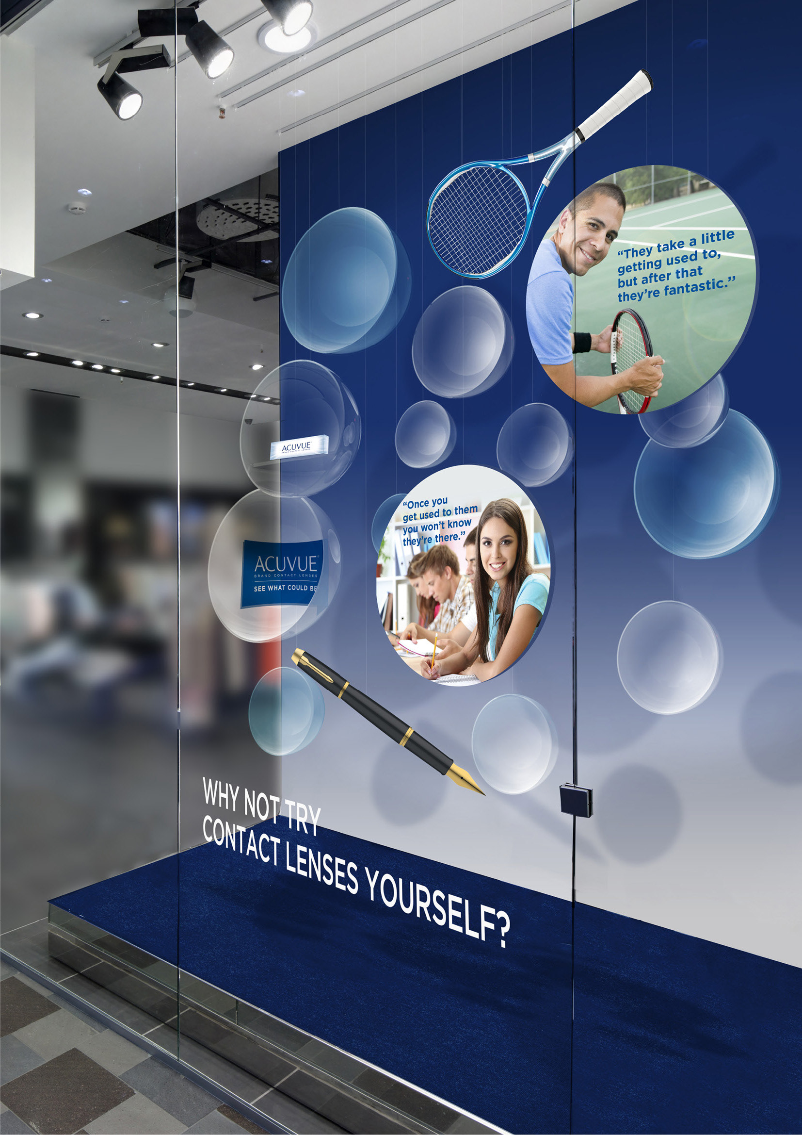 Advertising Concepts for Acuvue Contact lenses with instore ideas